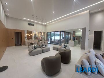 CASA MOBILIADA DE ALTO PADRÃO, COM 4 SUÍTES, SENDO UMA COM CLOSET, BANHEIROS COM BOX ATÉ O TETO, SALA DE JANTAR E ESTAR COM INFRATESTURA PARA AR CONDICIONADO, AMPLA ÁREA GOURMET , DESPENSA, LAVANDERIA, DEPÓSITO, GARAGEM PARA 2 CARROS COBERTOS E 2 DESCOBERTOS, ÁREA DE LAZER GRANDE COM PISCINA DE 36 MTS. LOCALIZAÇÃO PRIVILEGIADA. CONDOMINIO COM TODA INFRAESTRUTURA DE LAZER.